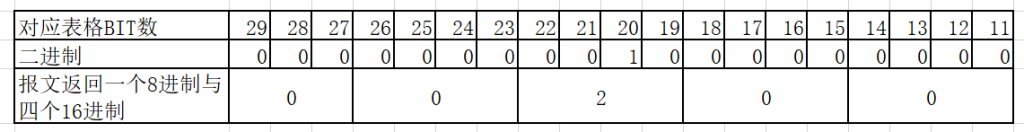 例如:此表中为343的第三个数值为2,按16进制换算为0010,得到对应字节20为1。