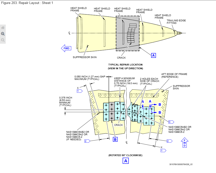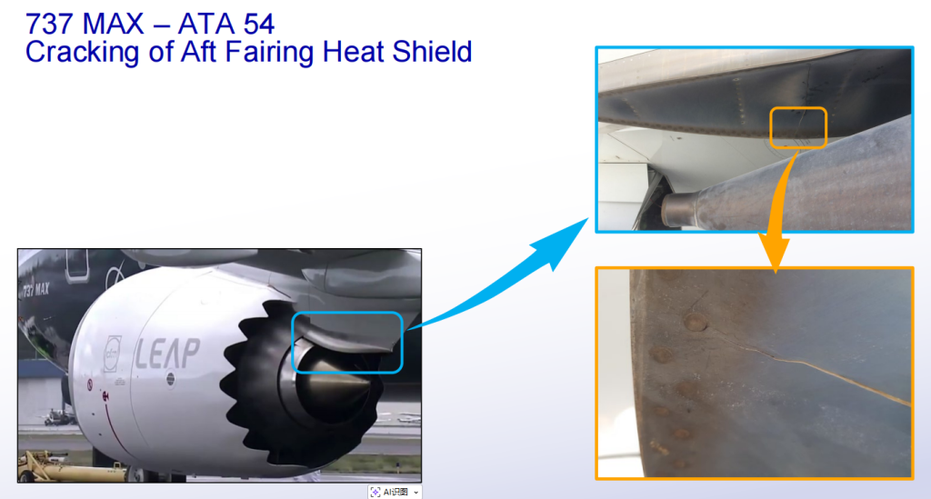 | 最终方案 | 裂纹热shield: 波音目前正在评估一种新的设计方案,并将根据进展情况提供更新。 变形热shield: 对于可见的变形损坏,无需采取行动。热shield是次要结构,只要不存在裂纹损伤,其保护后整流罩免受过热的功能就不会受到影响。 |