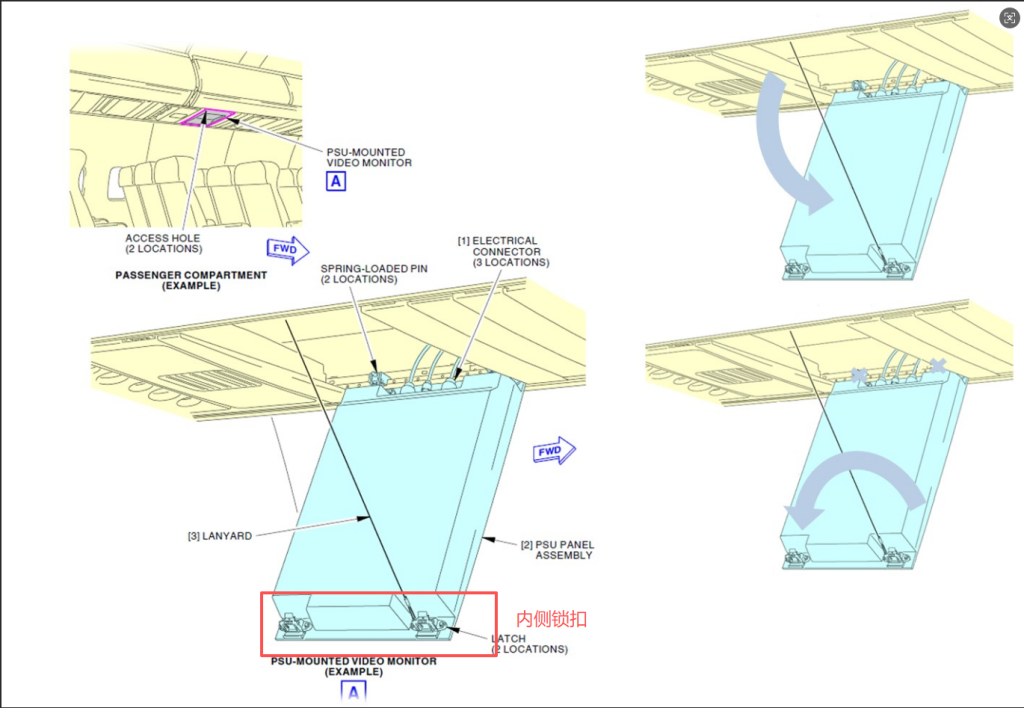 为了解决这个掉落的问题,波音在2023年发布了SB737-25-1858对PSU面板进行改装,采取增加次级挂绳的方式消除隐患。FAA预计将发布AD,具体时间待定。