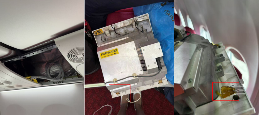 2025年10月,B-17*3飞机过站乘务反映带显示器的55HJK PSU脱落,砸到下方旅客。地面检查PSU板的一个锁扣断裂。该问题在机队首次发生,特做记录和说明。