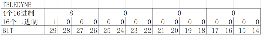 可以看出右发A通道是8000,每一位都16进制转2进制,得到下面的表格