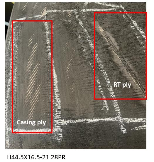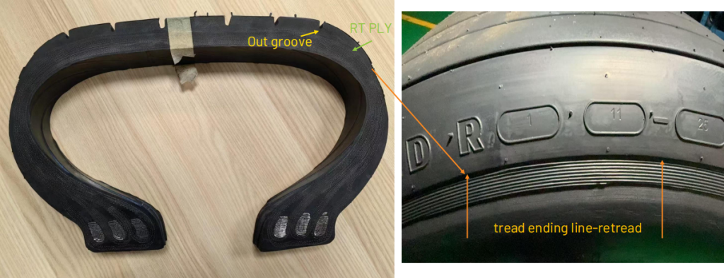 肩部指外沟槽(out groove)到胎面边缘(shoulder tread ending line),加强层(RT-PLY)覆盖的位置大概在外沟槽到肩部边缘一半的距离。