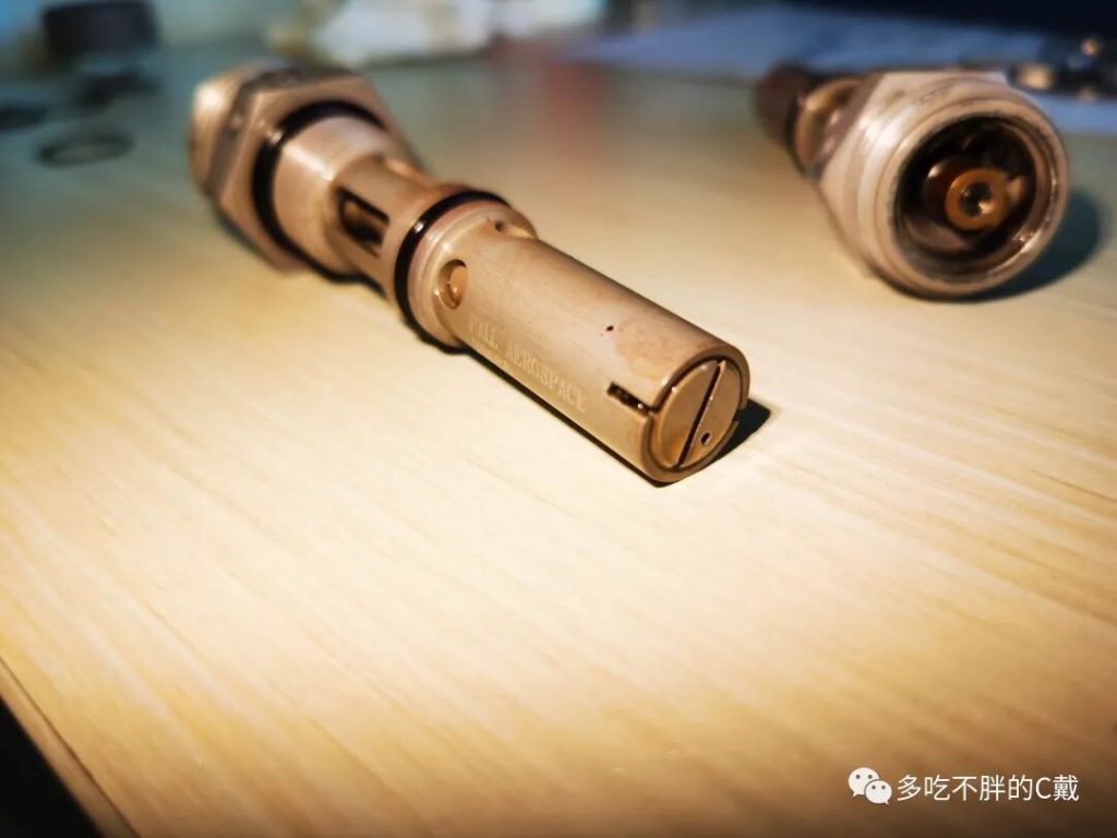 | 4 | 旁通阀阀芯 | 阀芯为哑铃形状,哑铃两端粗细不同,右边带花纹的端截面积大于左边,因此在哑铃细脖子位置处施加一个较大的滑油压强,将因为两头的面积不同导致一个压力差,这个压力差的方向向右推动阀芯。 |