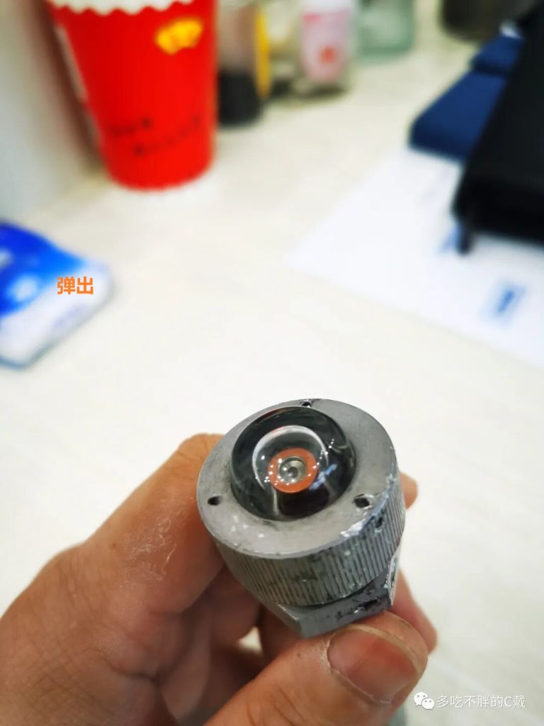 | 2 | 弹出指示 | 红色的小磁铁,用磁性与4号旁通阀阀芯相互吸引保持在不弹出的位置。 |