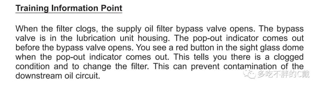 供油滤差压指示器设计目的是,供油滤脏了并且性能下降,弹出指示会提前弹出,表示油滤即将被旁通。该油滤并不提供任何机驾驶舱效应指示。