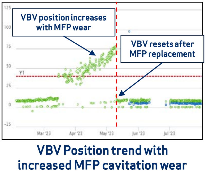 - VBV 在发动机关闭时指令关闭。空化磨损降低了 MFP 完全关闭 VBV 的能力