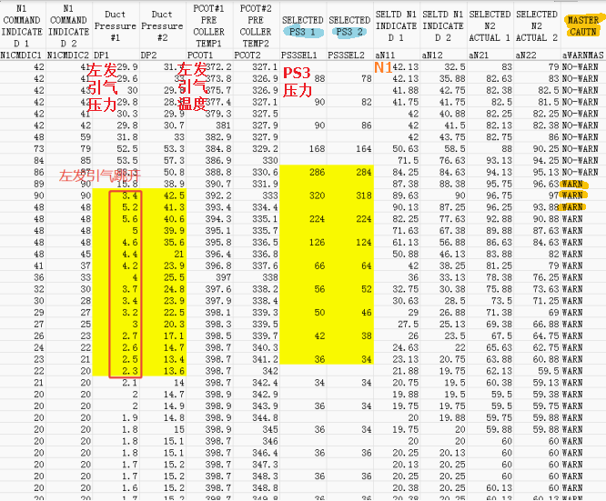 发现当大推力N1达到89%的时候,左发BLEED TRIP OFF灯亮,MASTER CAUTION灯亮,左发PRSOV关闭,引气切断,引气压力从50PSI一下子到3PSI,而左发引气温度比较稳定390F。