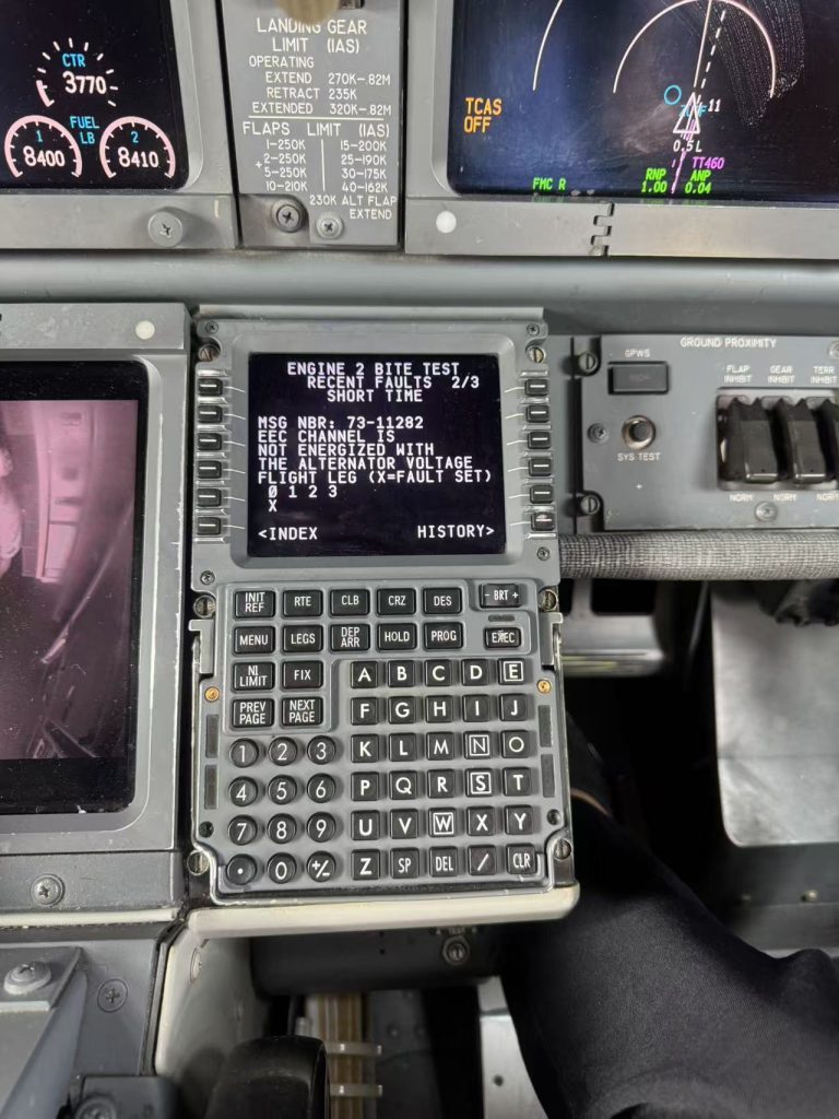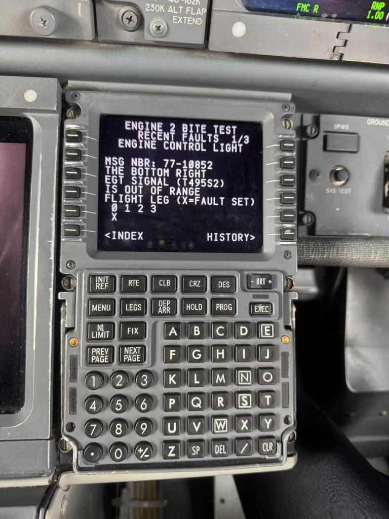 案例二:B-15X3,2026年3月6日,成都过站推出后右发控制灯亮,自检右发当前和历史LEG0段有77-10852 THE BOTTOM RIGHT EGT SIGNAL (T495S2) IS OUT OF RANG控制级别信息(正常情况下此信息为经济型信息),当前LEG0-3段有77-10852 THE BOTTOM RIGHT EGT SIGNAL (T495S2) IS OUT OF RANG经济型信息,历史LEG0-10段有77-10852 THE BOTTOM RIGHT EGT SIGNAL (T495S2) IS OUT OF RANG经济型信息;自检右发当前和历史LEG0段有73-11282 EEC Channel is not Energized with the Alternator Voltage 短时信息。