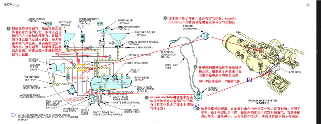 2026年以来,B-54*9飞机,反复反映空中污水表显示已满,落地恢复正常。在对指示系统部件进行多轮隔离后,故障依旧。后在地面增压验证中发现随压力上升,污水指示值增加,增压到4.0时指示满位。