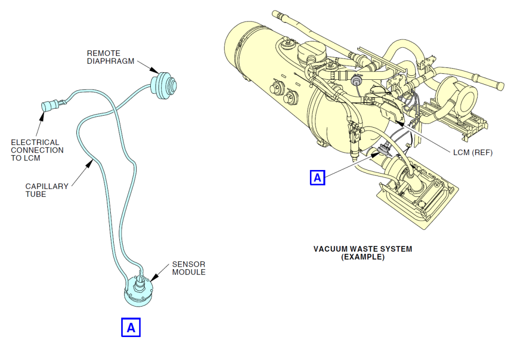 在静态状况下,远程膜盒感受到的管道气压与污水箱内部空气压力大小相等,并通过毛细管传递到传感器模块,由传感器模块计算压力差,同时利用此差值计算污水箱内污水量,随后发送信号至LCM并点亮后乘务员面板上对应的污水量指示灯或液晶显示器。