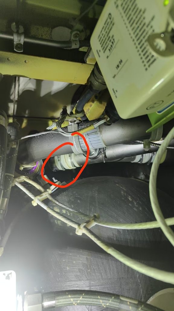 后续在压差4.0的情况下,检查机外污水系统排气口存在出气。进一步检查发现污水箱气体分离器下游管路一波纹管破损。