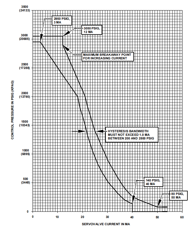 | 2000 – 3000 psig | 饱和区 | 滑阀已移动到接近最大位置,继续减小电流不会显著增加滑阀开度 |