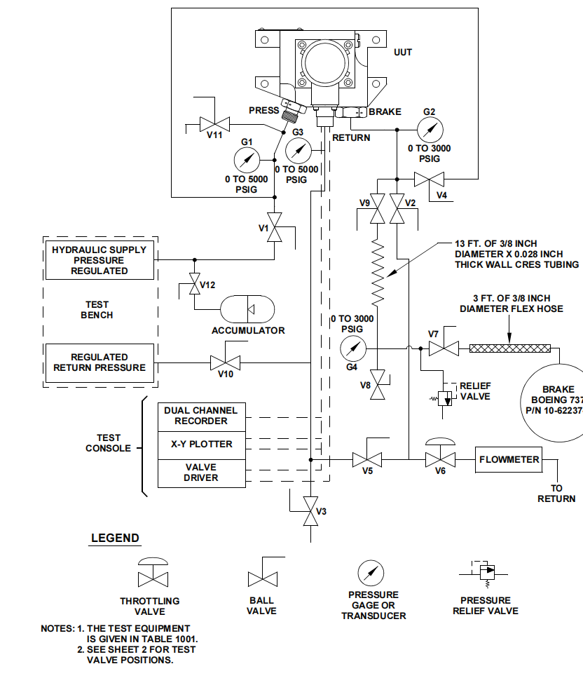 | 7 | 使用X-Y记录仪绘制制动压力与控制电流的一个完整周期的曲线,并评估 | 齿轮收回制动压力在5 mA时必须大于350 psig(2413 kPa),如图1002所示 |
